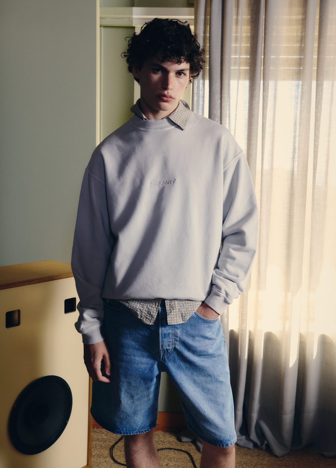 Crewneck sweatshirt 480 GSM French Terry, premium cotton. Soft, pre-shrunk and sun faded dyed with sttown embroidery logo on chest.