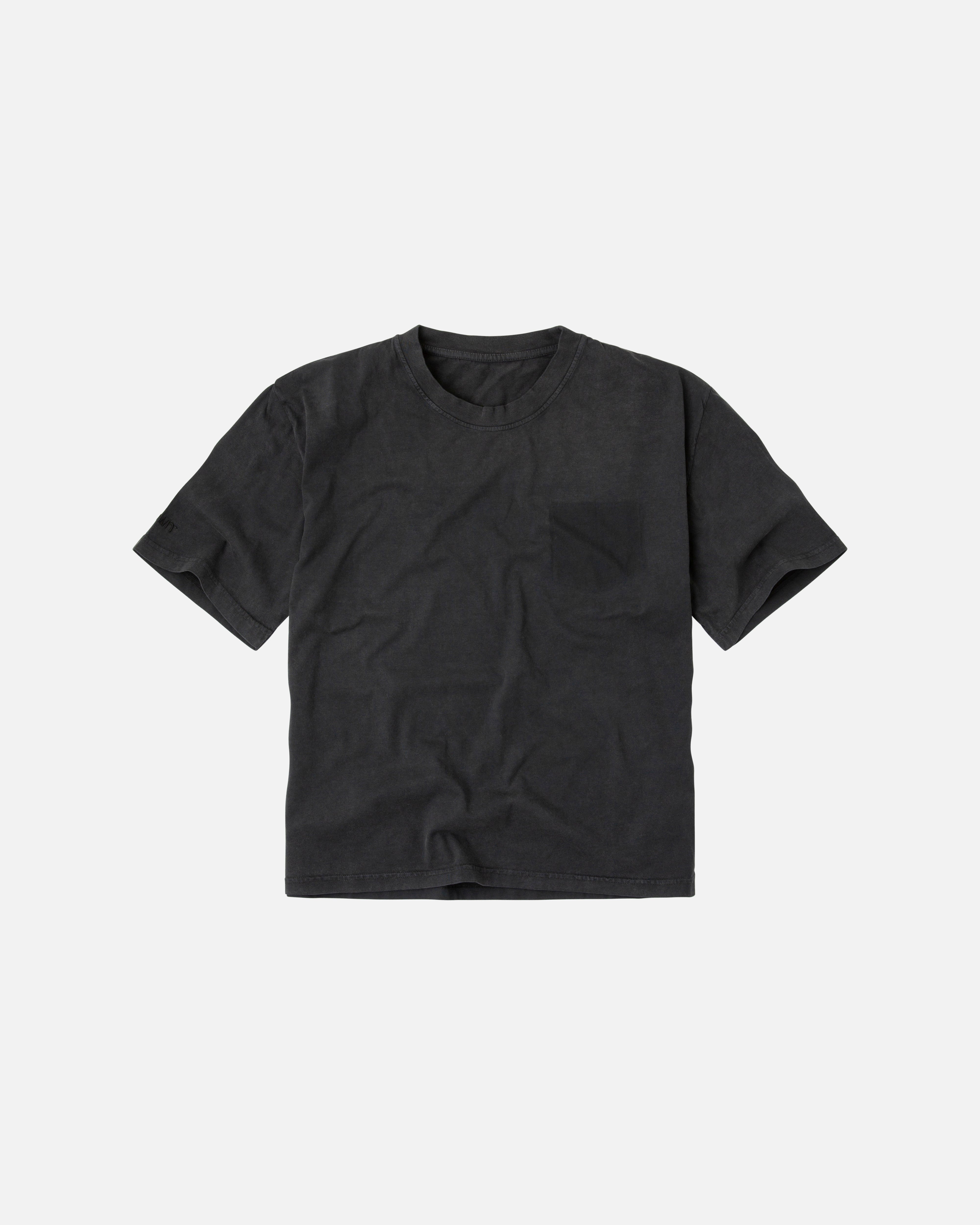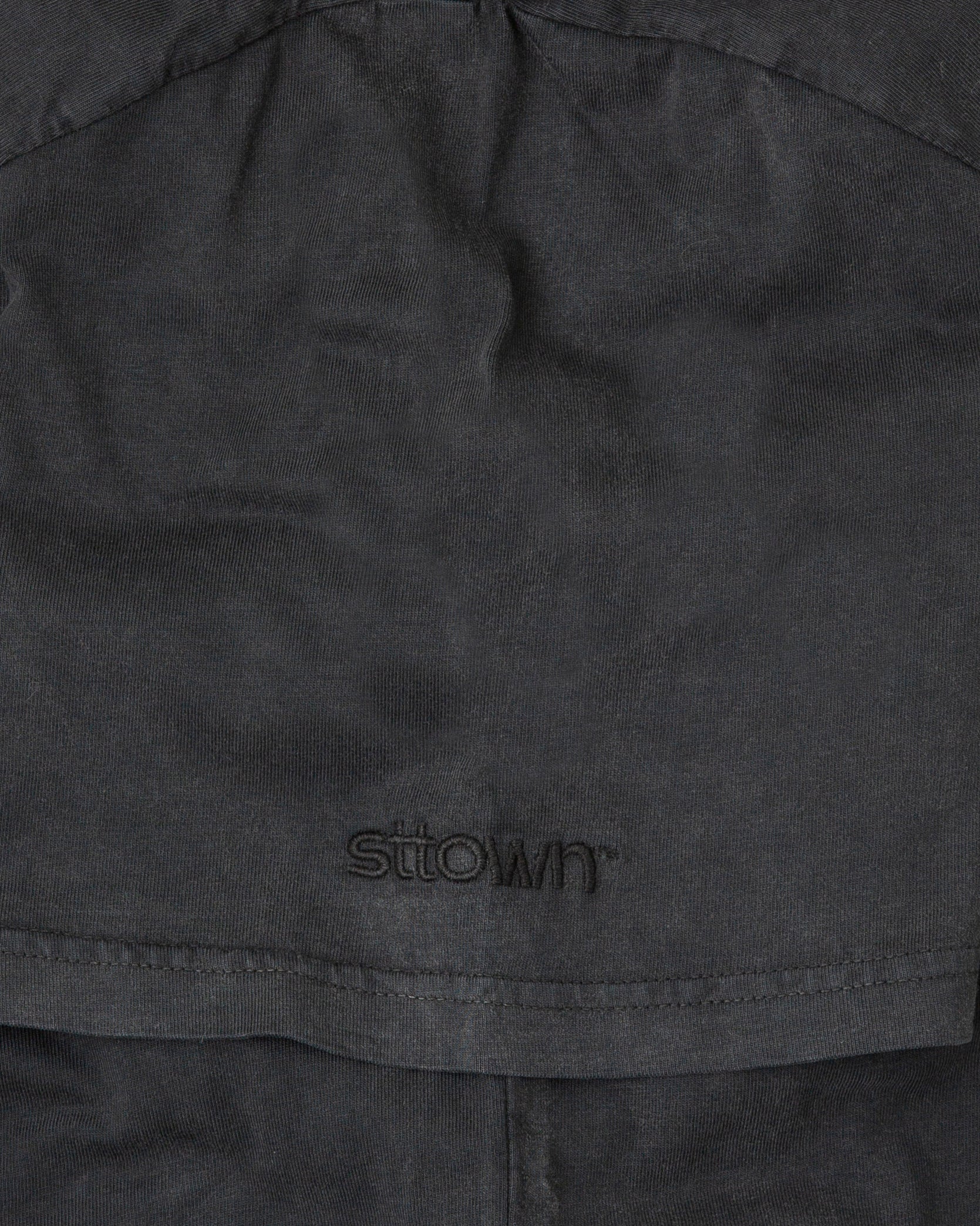 This Fake Pocket tee fits relaxed and boxy fit in acid washed cotton and fake pocket. Rib crewneck and sttown embroidery logo on the right sleeves and Washed black color.