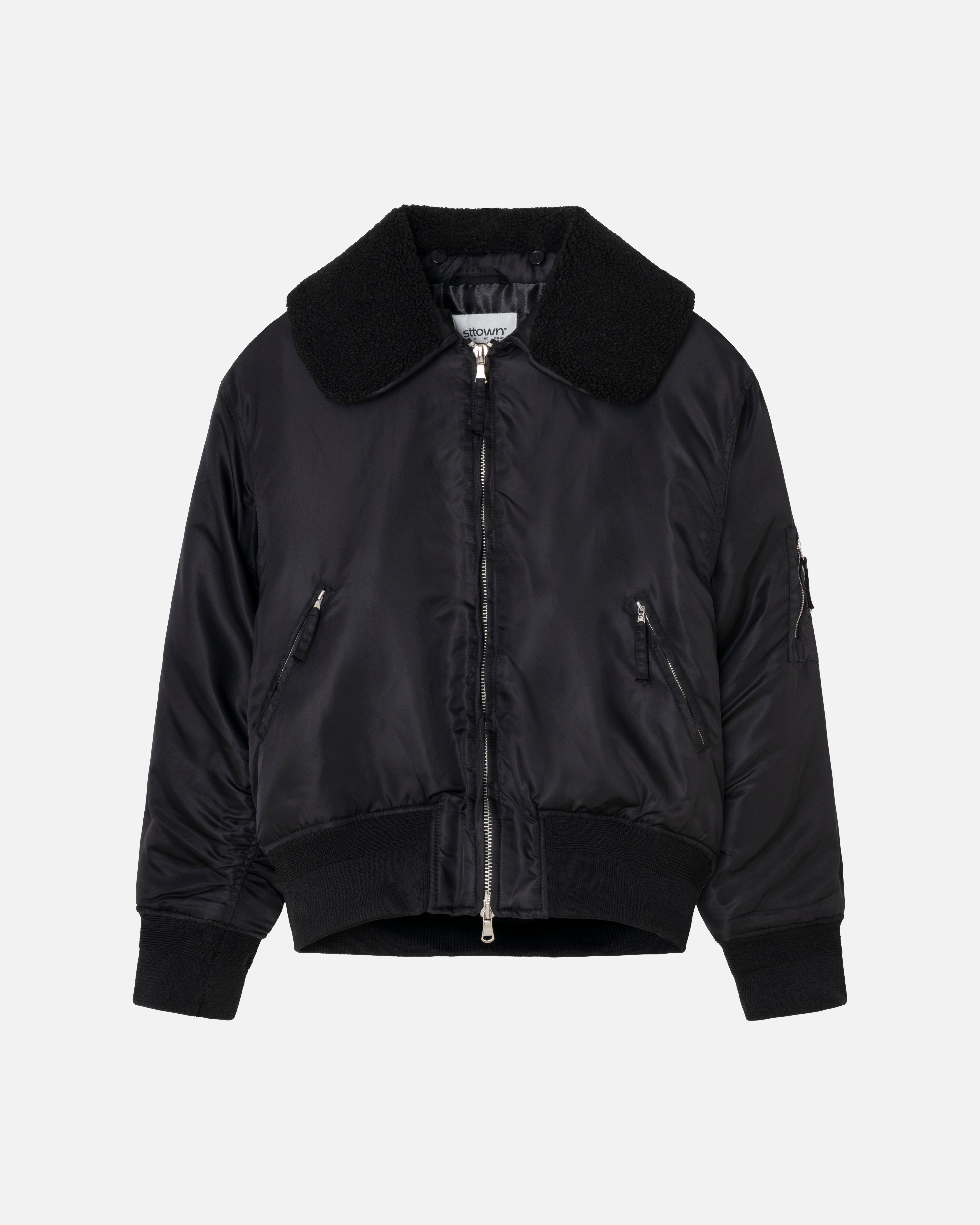 This PF Bomber jacket with quilted reverse in polyester has detachable collar in polyester and soft lining.