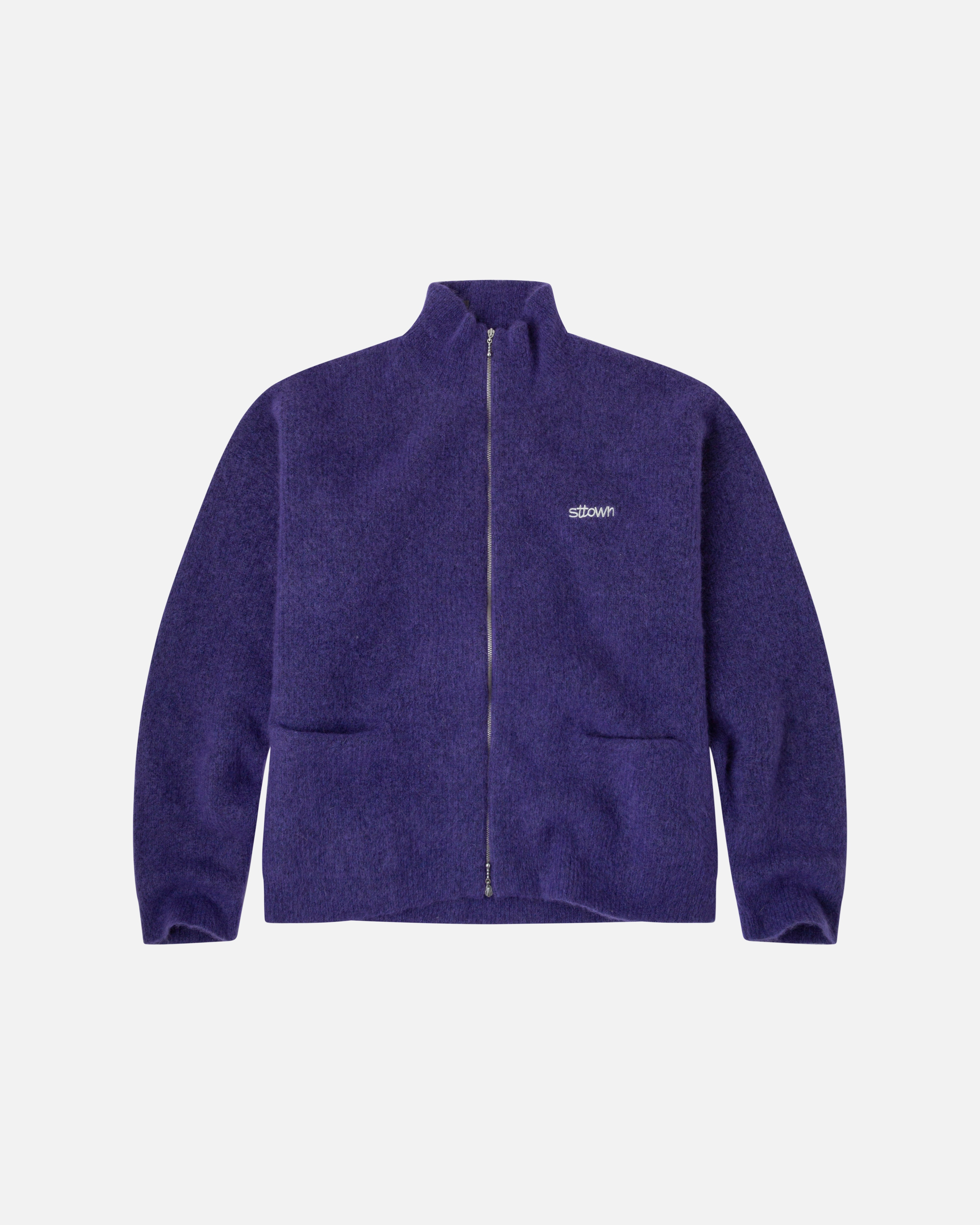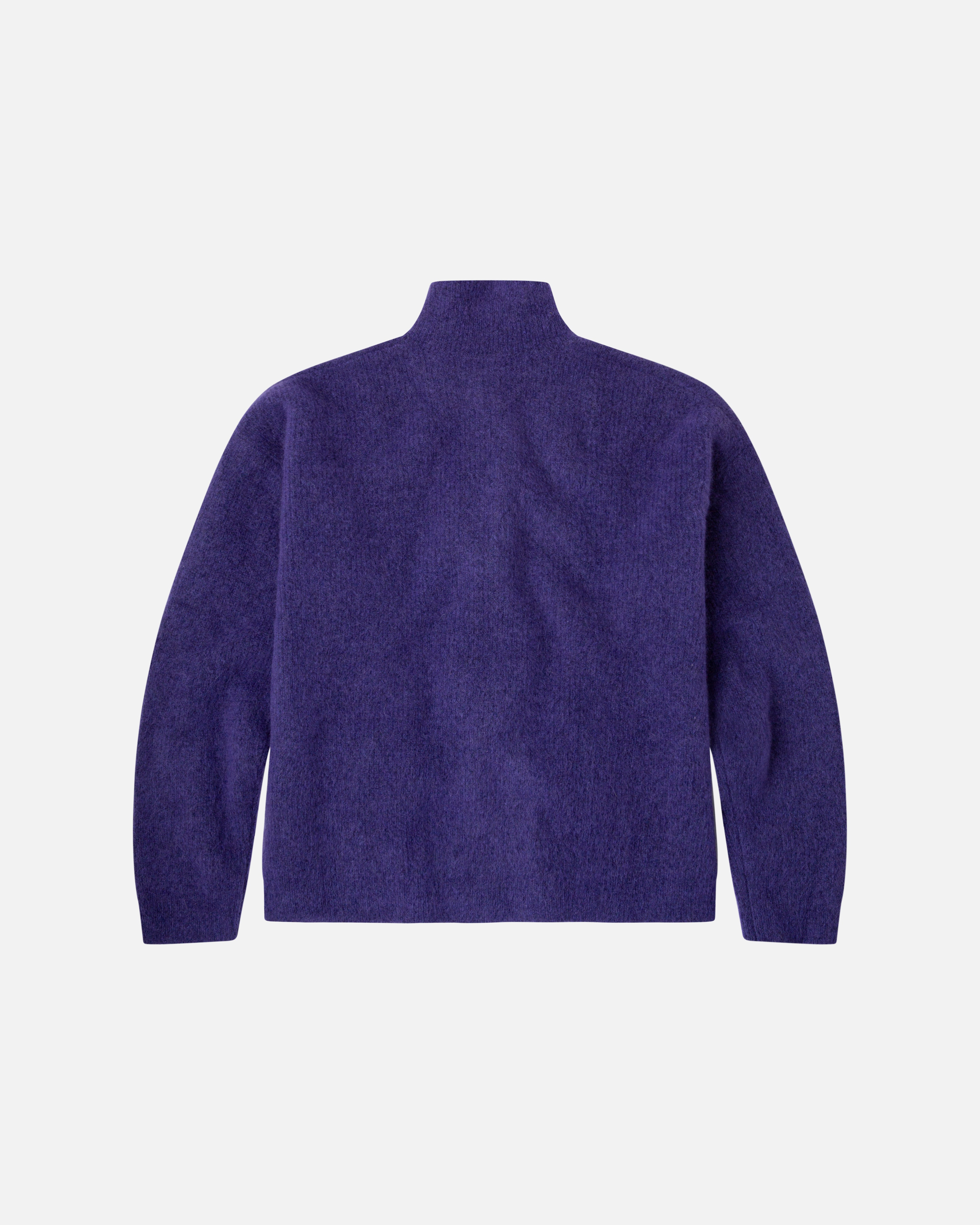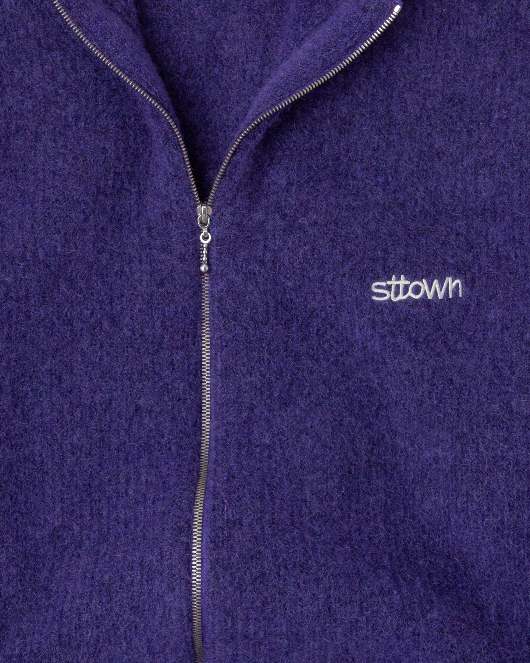 This Mohair zipper jacket fits boxy fit in a soft Mohair. With ribbed funnel neck collar with two way zip, two inserted hand pockets. To help keep the integrity of the garment please store the garment folded.