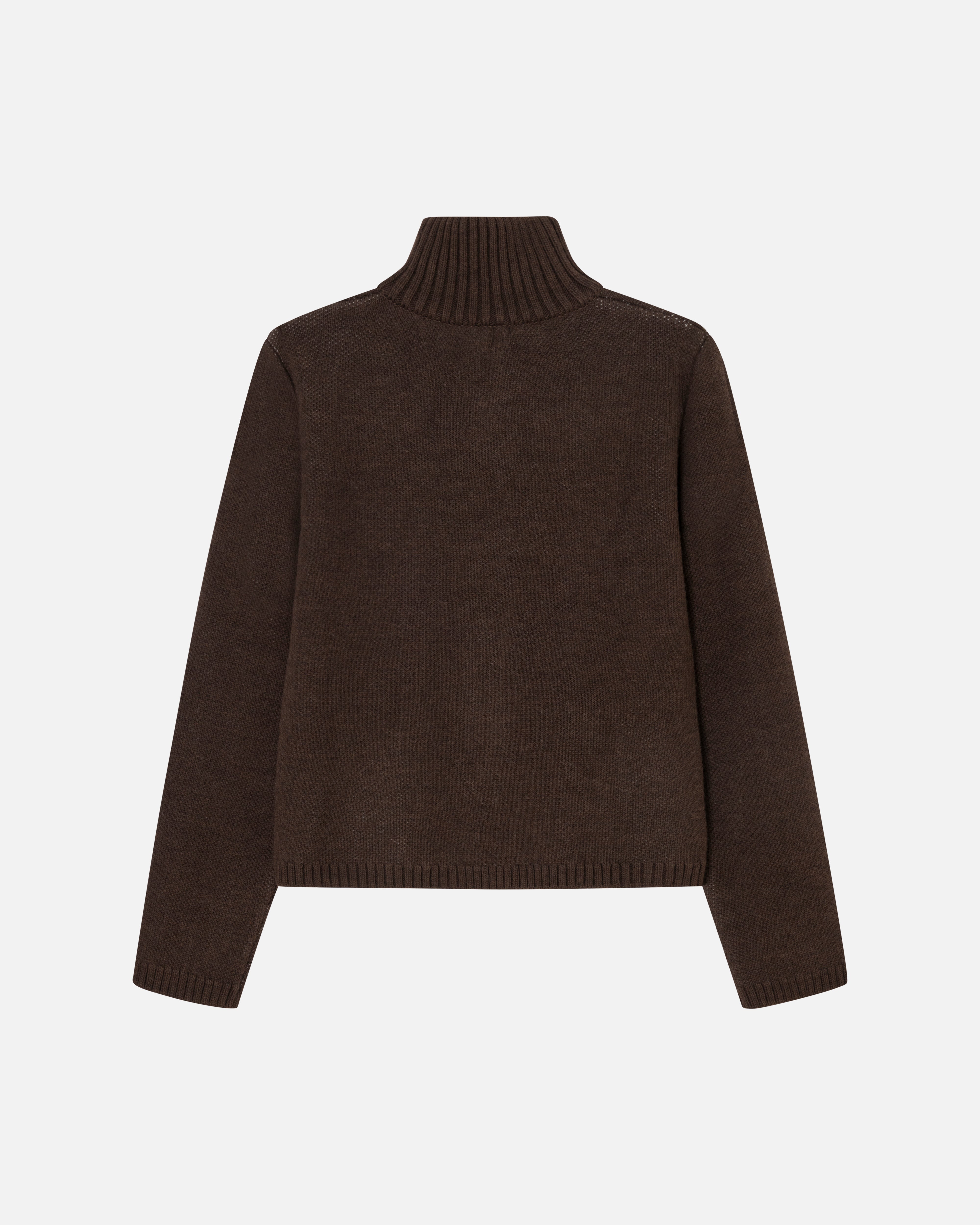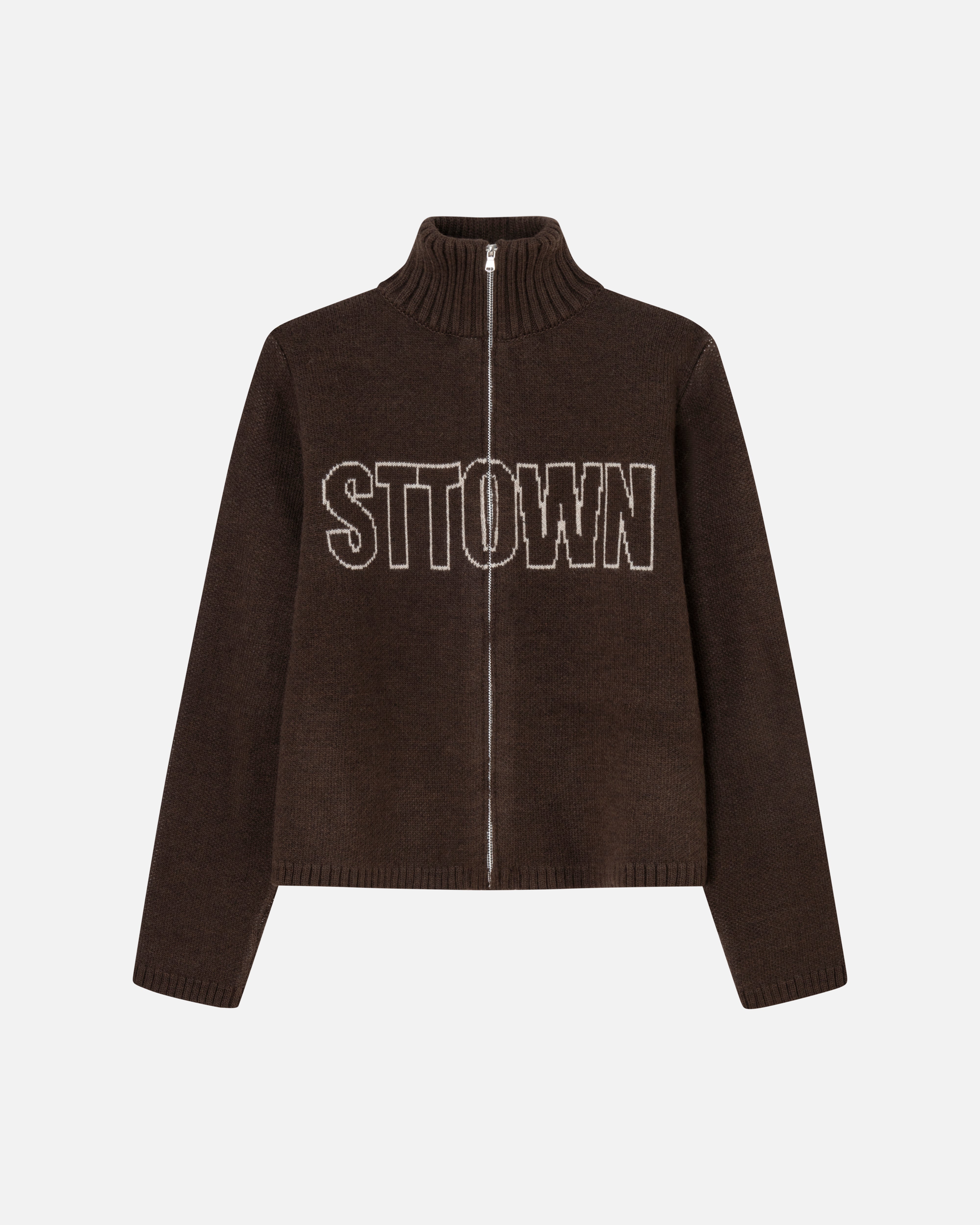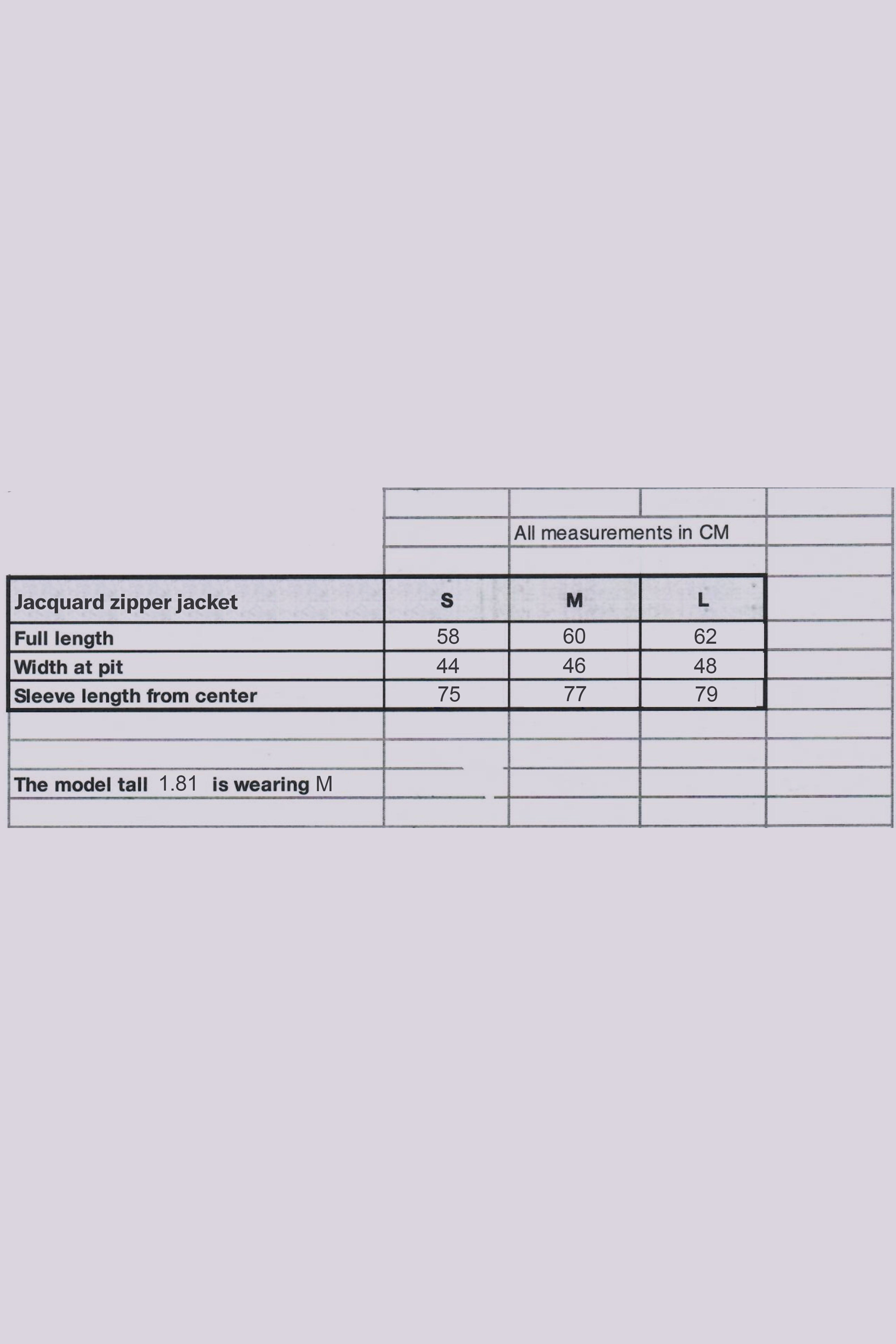 This Wool jacket fits straight fit with zipper and Sttown jacquard pattern.