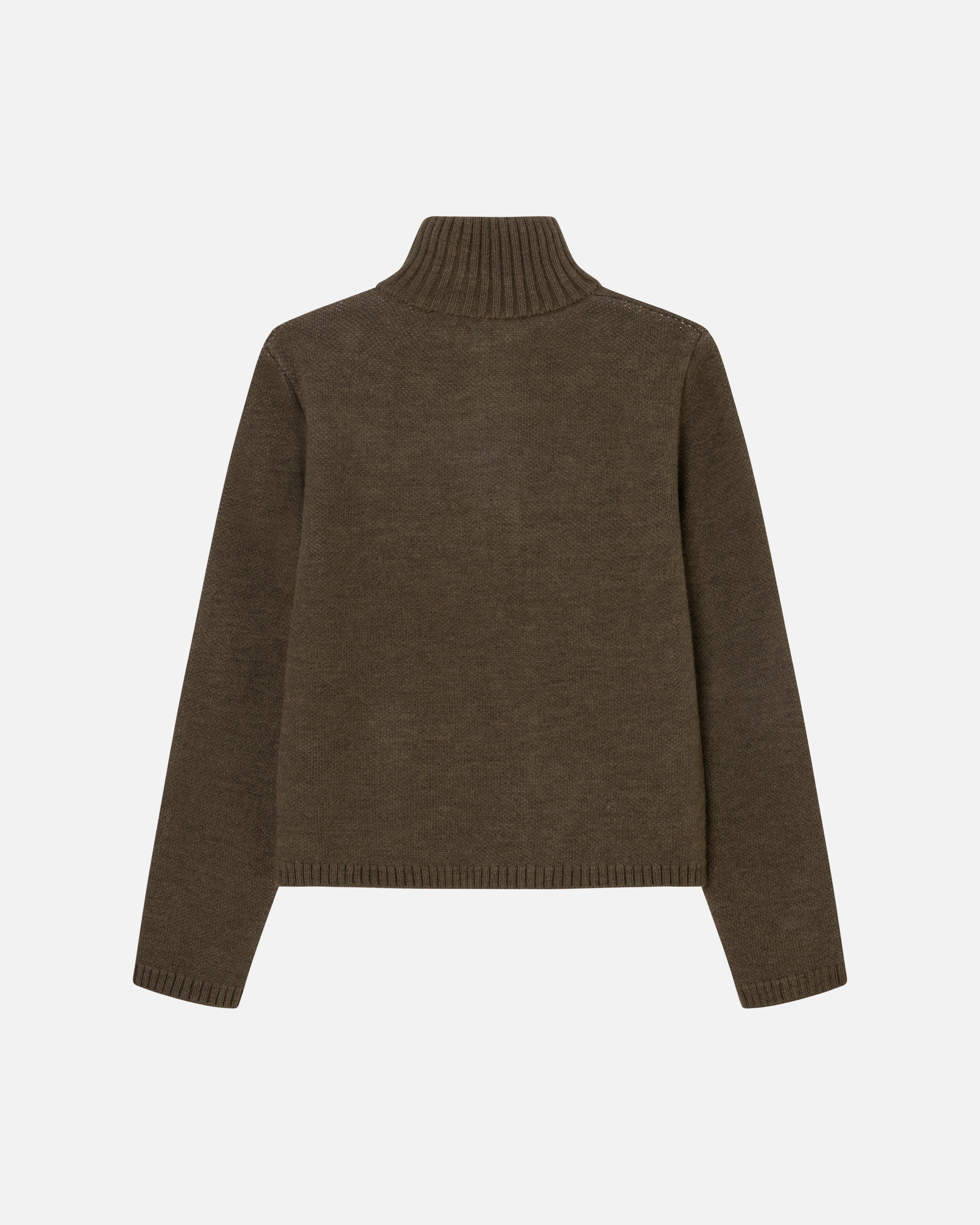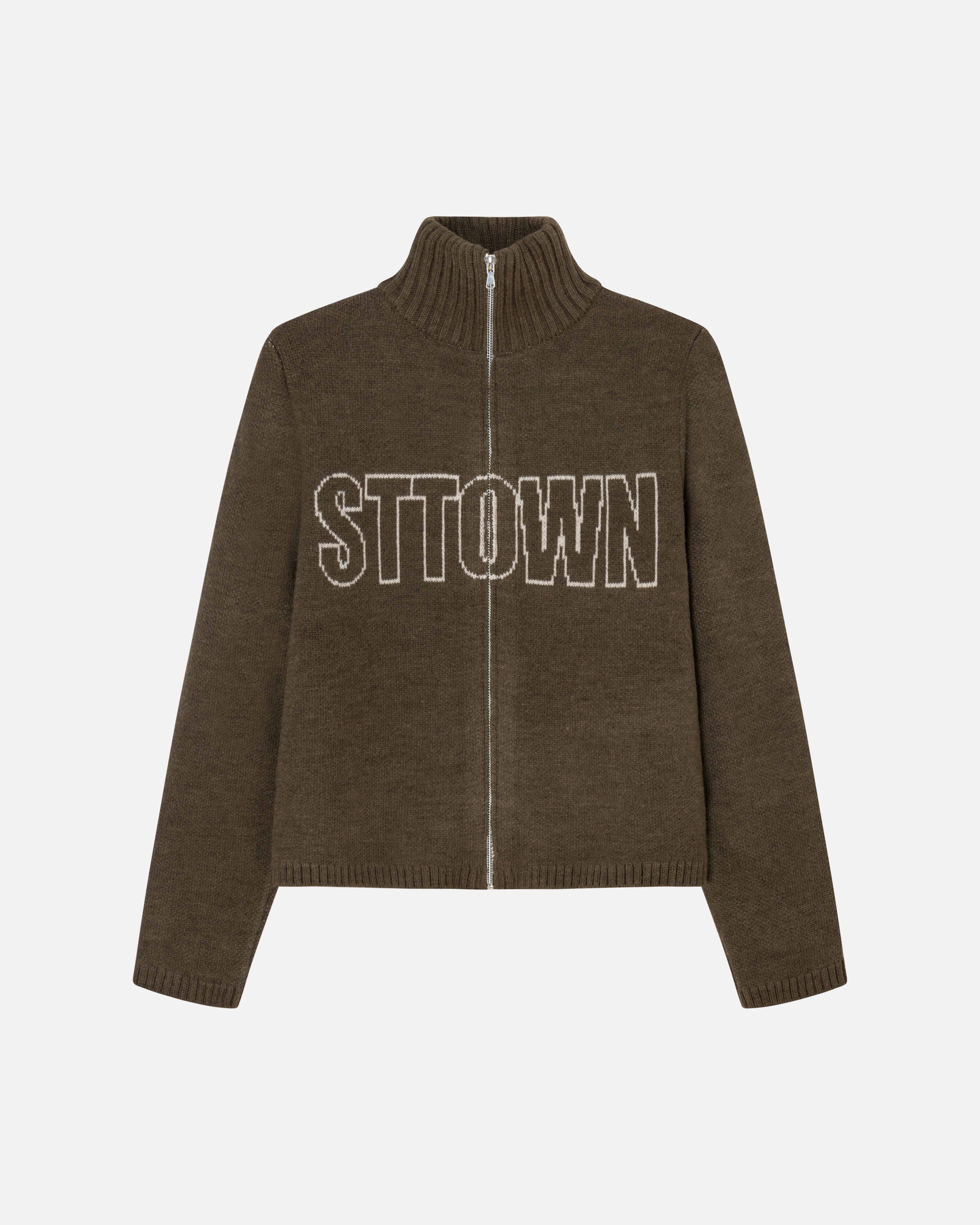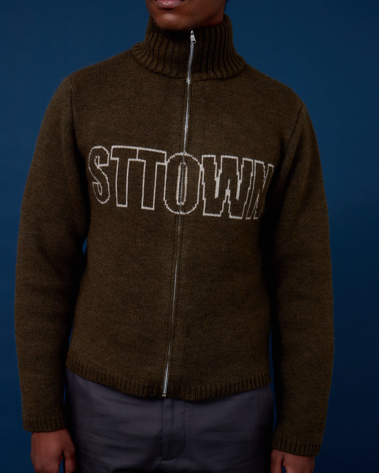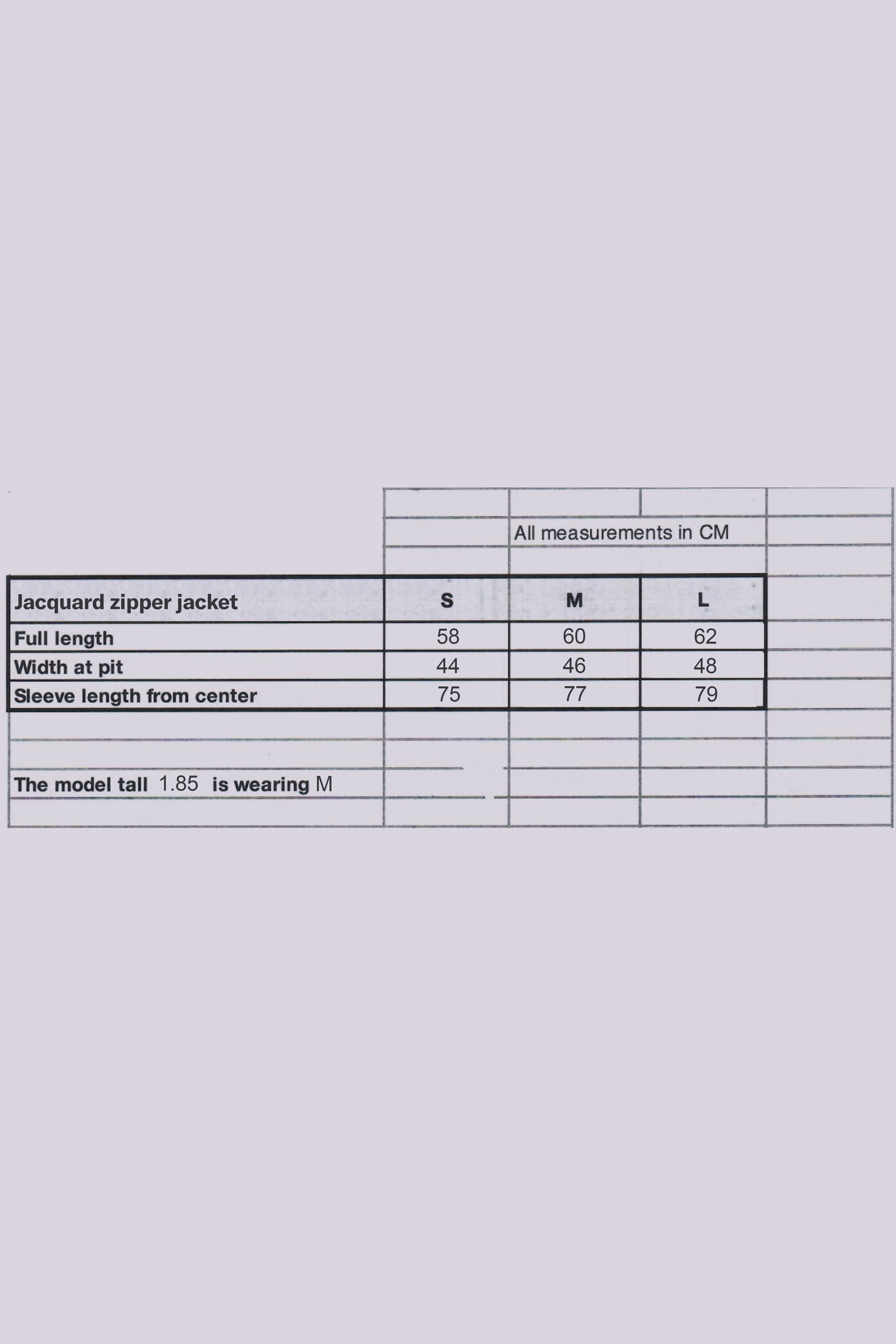This Wool jacket fits straight fit with zipper and Sttown jacquard pattern.