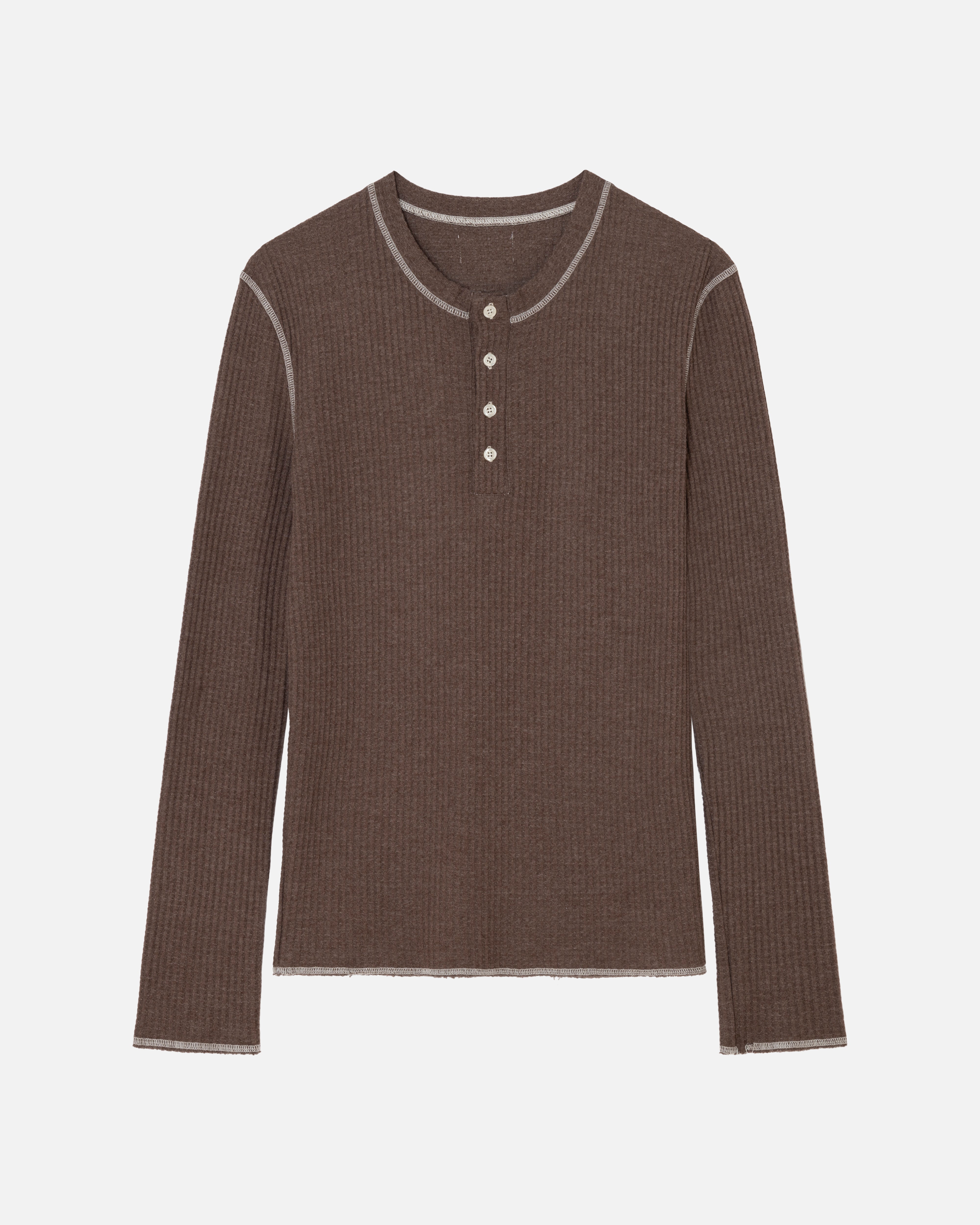 This Waffle long-sleeve tshirt fits and features dropped shoulders, tight fit and crewneck with button detailing. The cuffs and hem with overlock and cut edge.