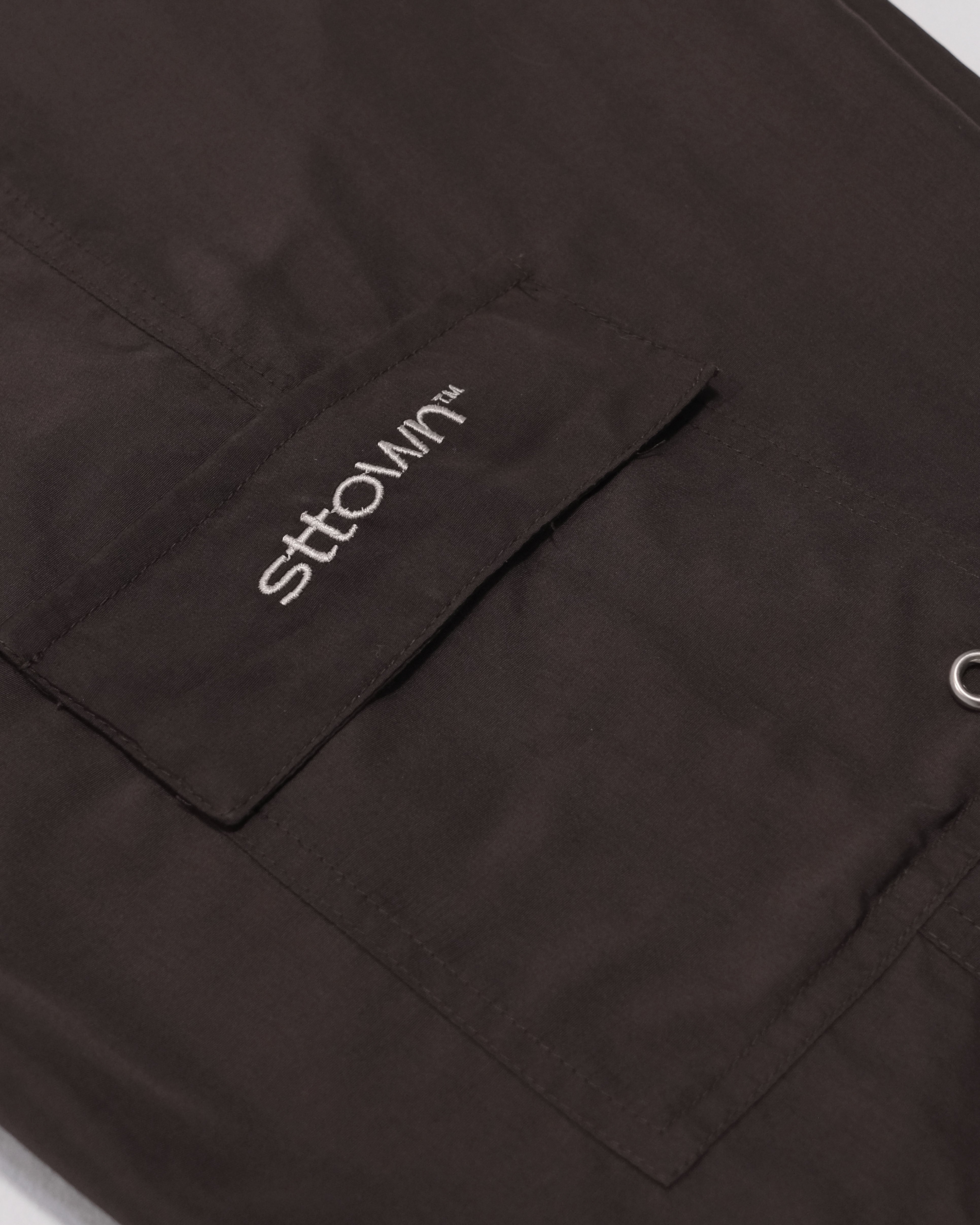 These Cargo swim shorts feature a wide-legged fit with a cropped length and regular rise. They include a patch pocket on the side with Sttown embroidery.