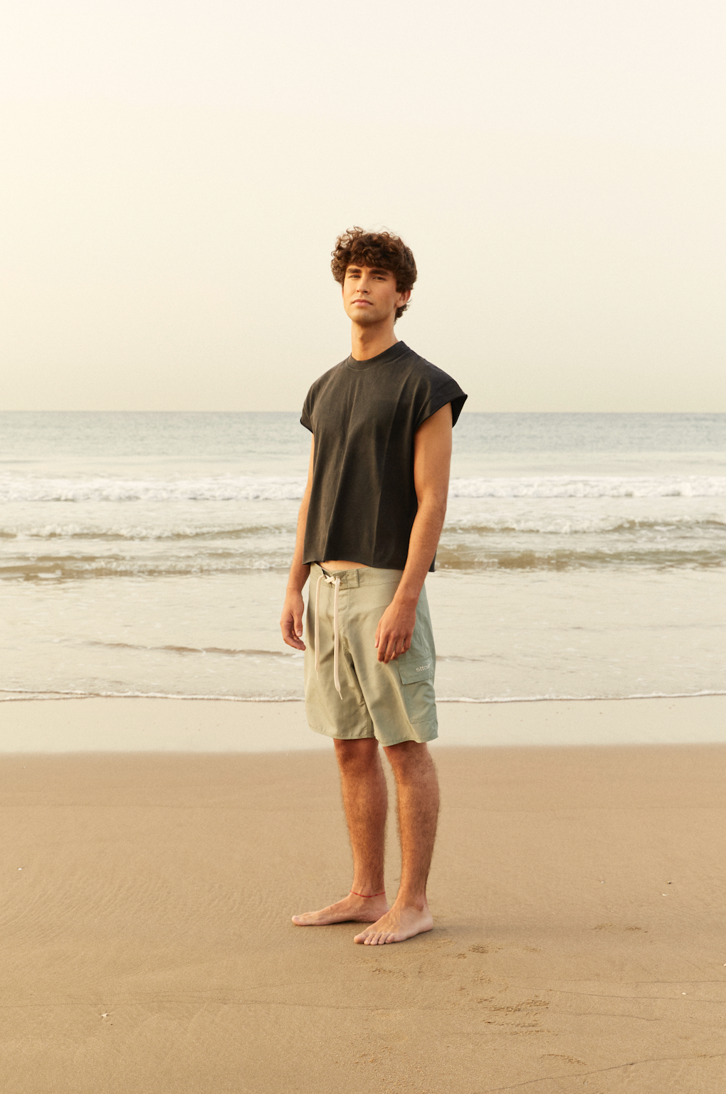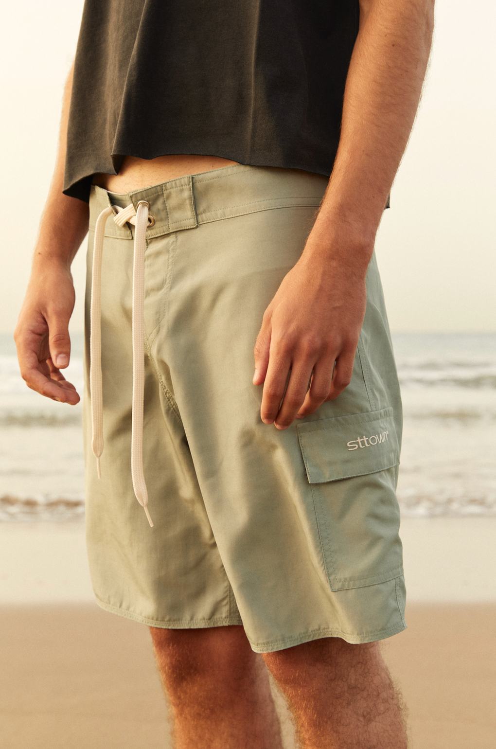 These Cargo swim shorts feature a wide-legged fit with a cropped length and regular rise. They include a patch pocket on the side with Sttown embroidery.