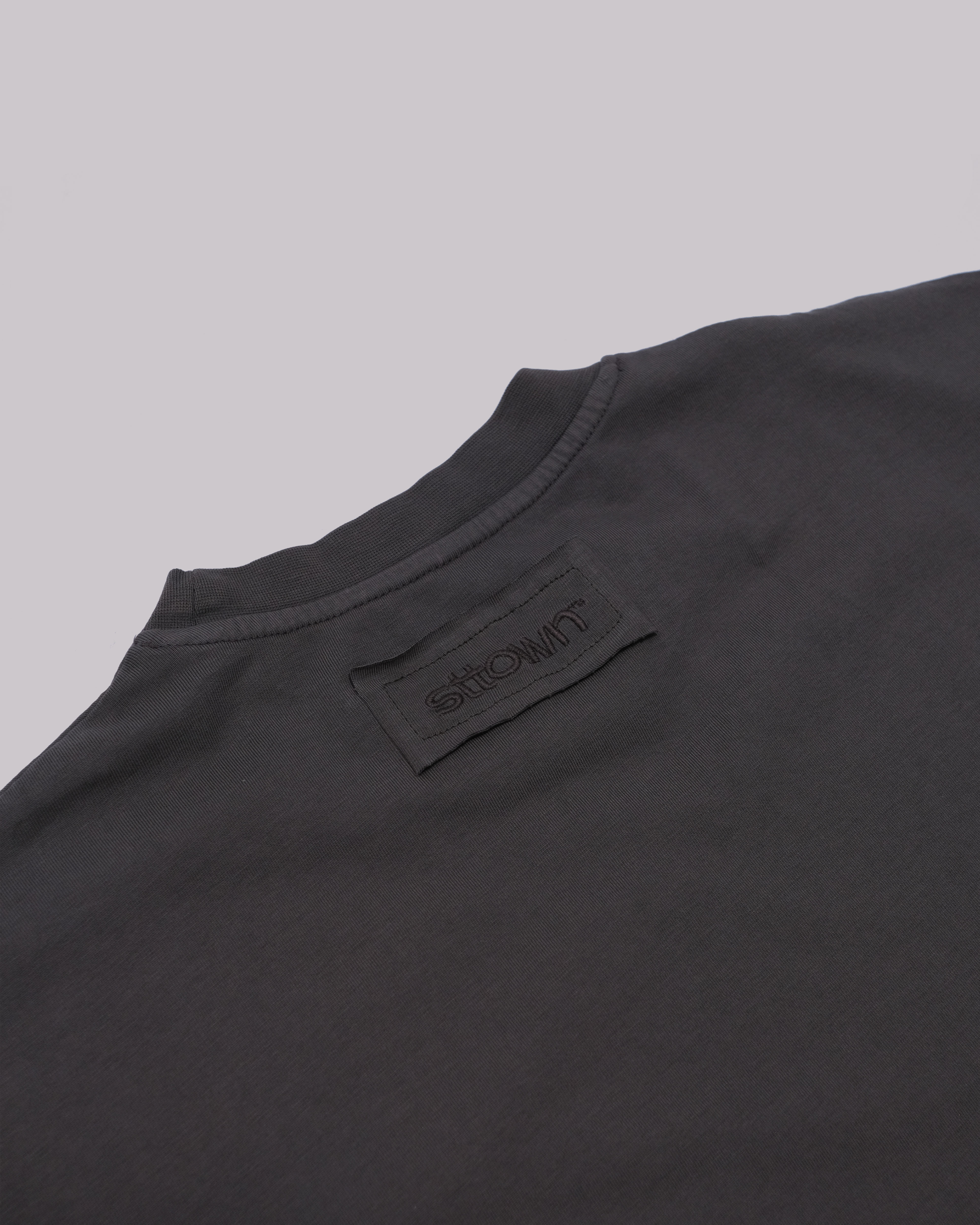 This Fake pocket babe tee fits relaxed and cropped fit in acid washed cotton and fake pocket. Rib crewneck and Sttown embroidery logo in the back.