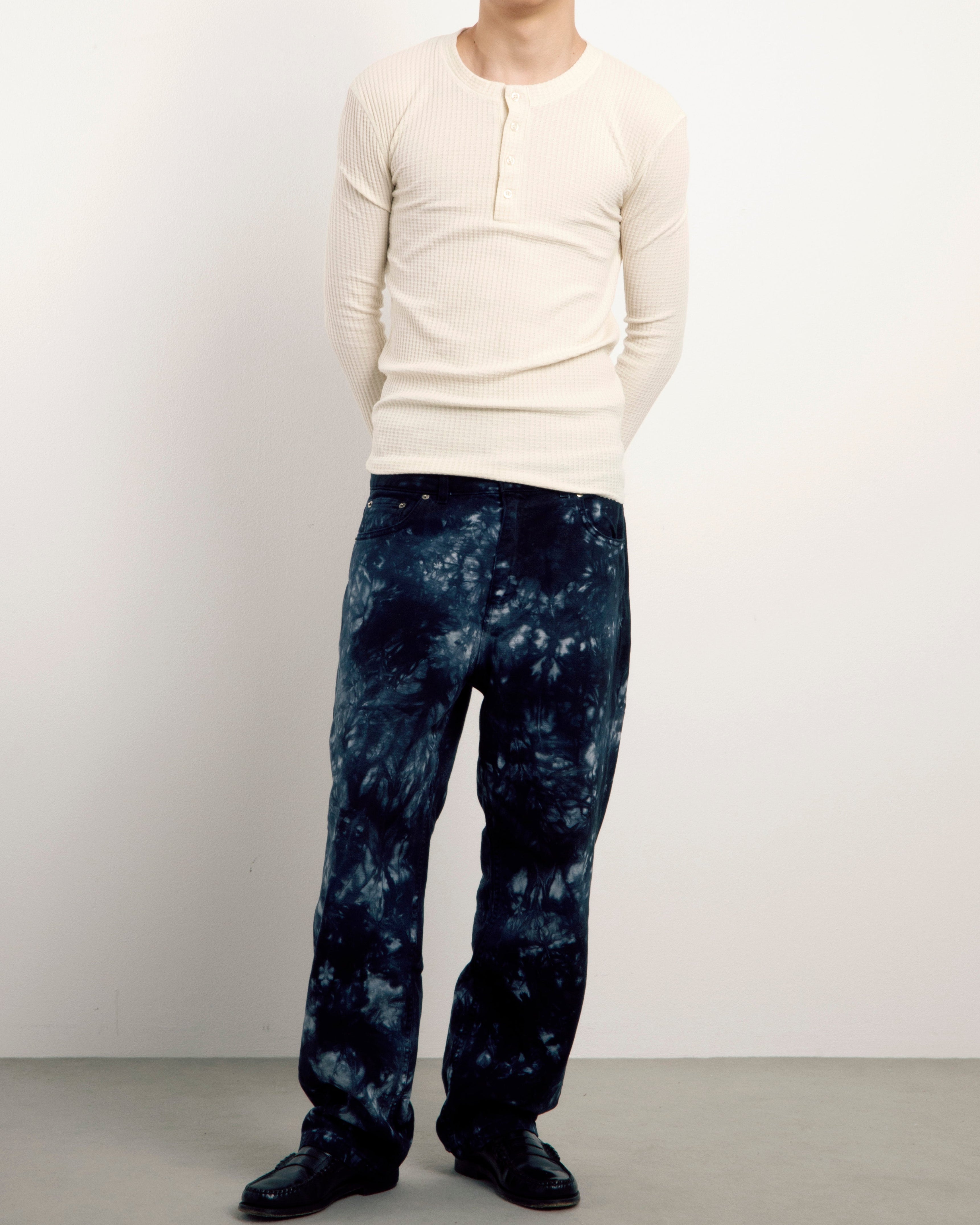 This Waffle long-sleeve fits and features dropped shoulders and crewneck with button detailing. The cuffs and hem with overlock and cut edge.