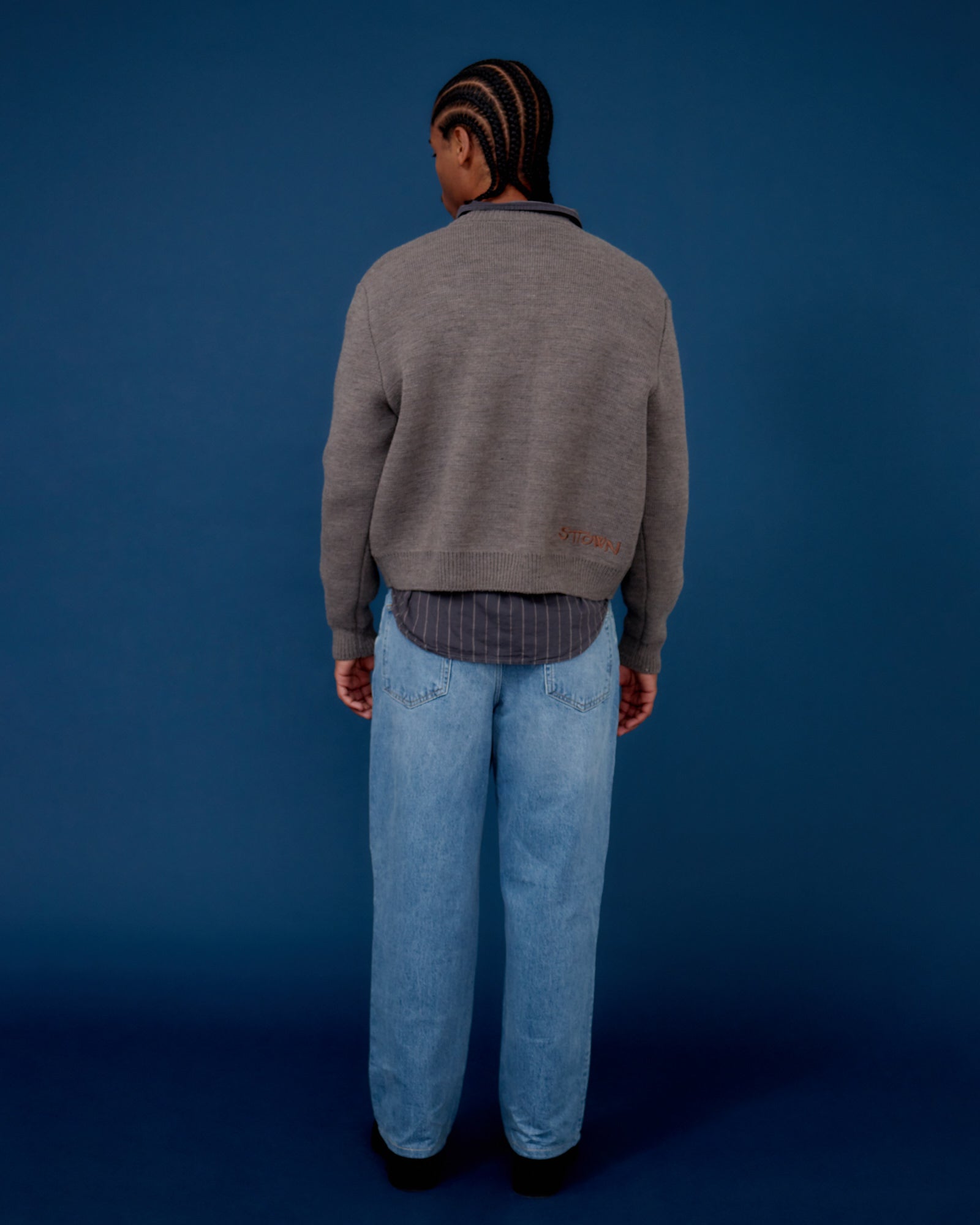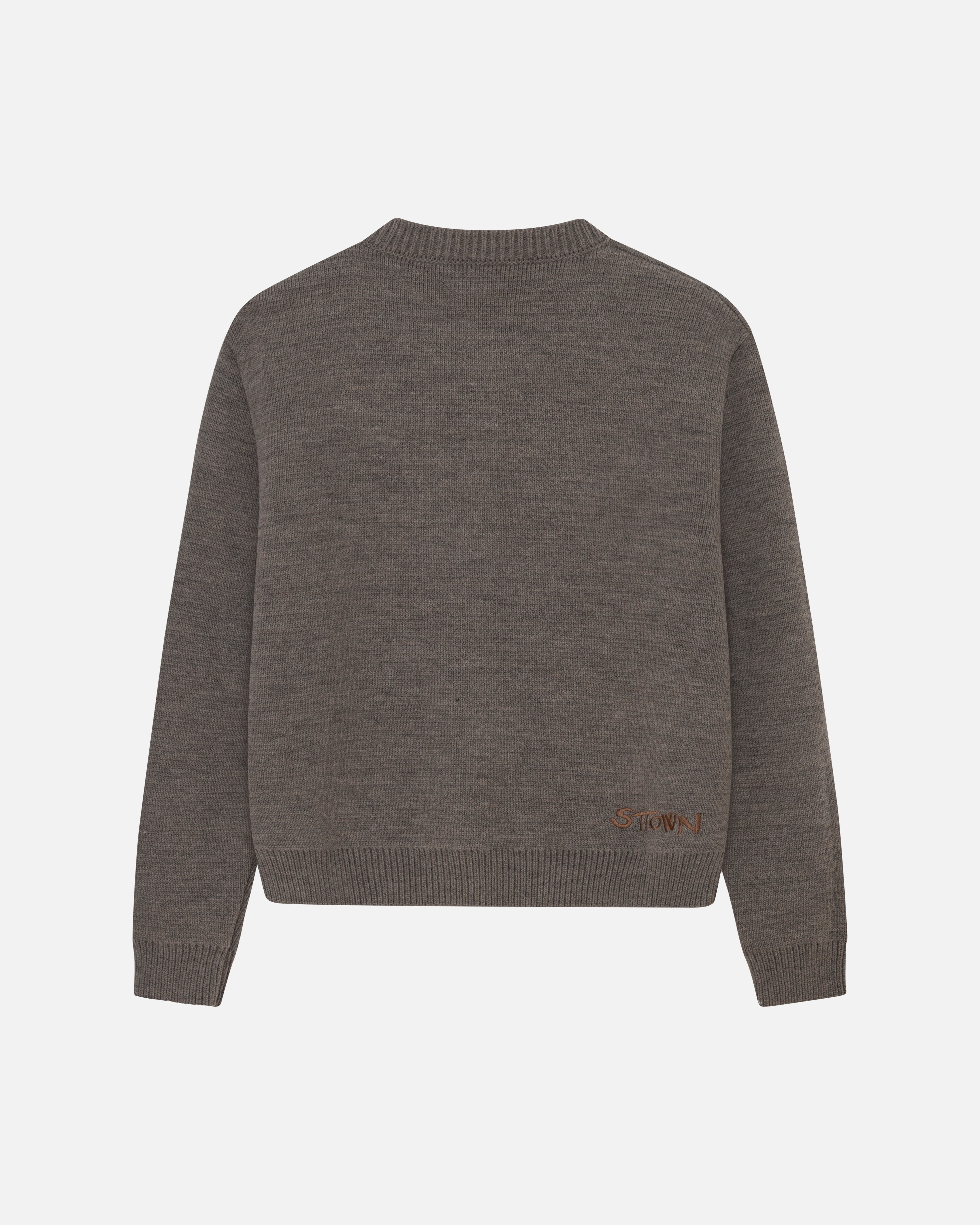 This Wool cardigan fits bomber cropped fit, featuring button closure and Sttown embroidery.