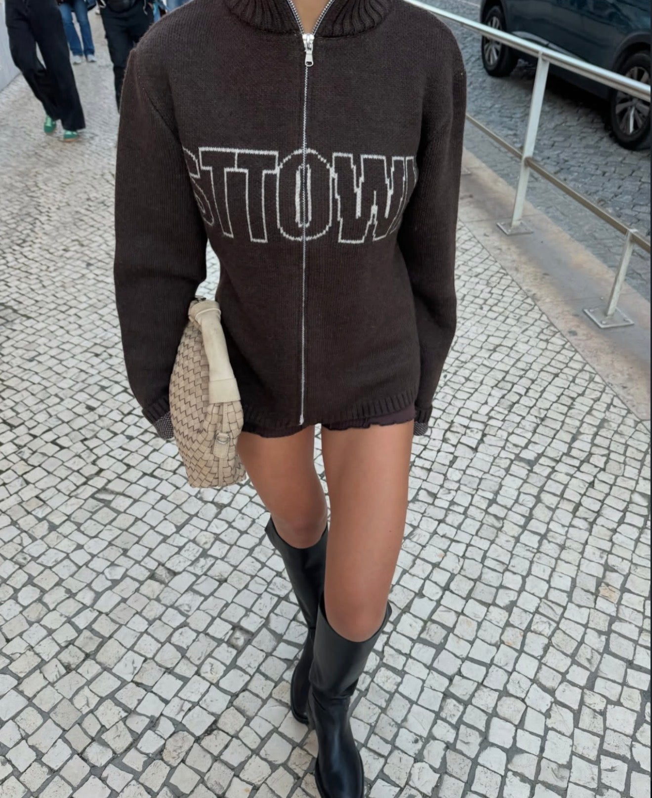 This Wool jacket fits straight fit with zipper and Sttown jacquard pattern.