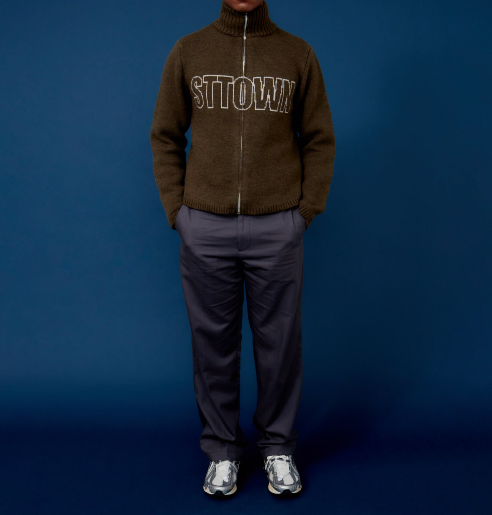 This Wool jacket fits straight fit with zipper and Sttown jacquard pattern.